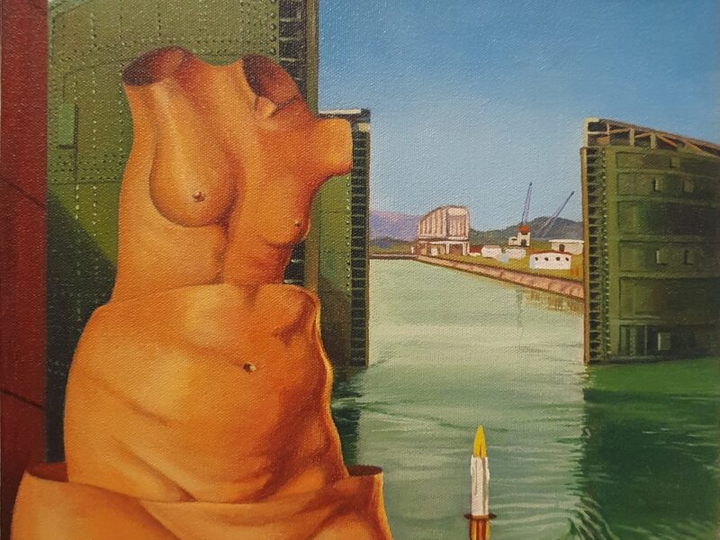 Bono original del Canal de Panama con ferrocarril – Alexis Benalcazar Alexis Benalcazar / Bonos del Canal Pintados / Pinturas